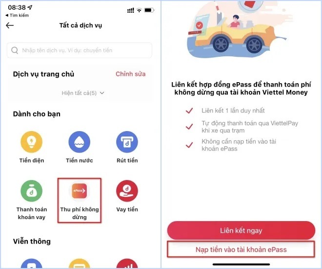 Chủ xe đang sử dụng dịch vụ thẻ của VETC sẽ phải nạp tiền để duy trì tiền tài khoản trước mỗi lần di chuyển trên cao tốc, trong khi thẻ ePass của VDTC cho phép liên kết với ví điện tử Viettel Money để trả phí tự động giúp hạn chế tình trạng quên nạp tiền.