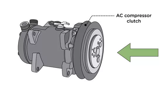 - Máy nén khí trông giống như một động cơ nhỏ có bánh xe lớn ở một đầu. Bánh xe đó (là bộ ly hợp máy nén) phải đang quay. Nếu nó không quay thì máy nén khí đã gặp vấn đề.