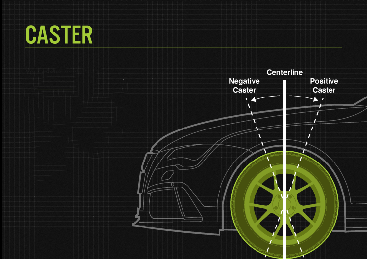 Là độ nghiêng của trục xoay bánh lái khi nhìn từ bên hông xe.