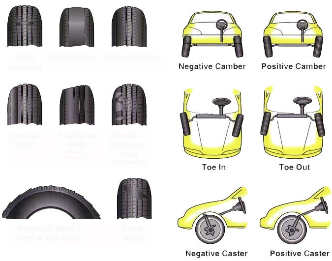 • Camber sai: Gây ăn mòn lốp má trong hoặc má ngoài và khiến xe nhao lái.