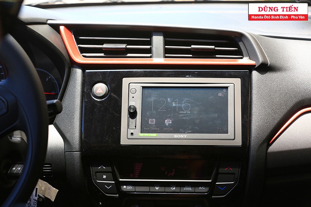 Khu vực táp lô của Brio có thiết kế khá giống với Honda City từ cách bài trí và sắp xếp. Thú vị nhất là việc Brio không sở hữu các núm xoay to bản, thô kệch như các đối thủ để chỉnh nhiệt độ mà thay vào đó là hai phím bấm đặt dọc nhỏ nhắn.