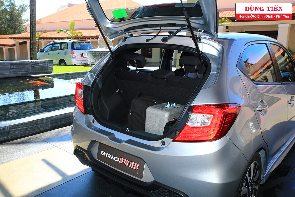 Phong cách thể thao tiếp tục được Honda thể hiện ở phần đuôi của Brio RS thông qua ốp cản sau bằng nhựa đen mờ với hai hốc gió giả đối xứng hai bên cùng tấm khuếch lưu nhằm gia tăng tính khí động học cho chiếc xe.
