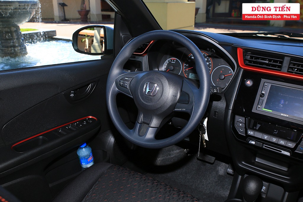 Vô-lăng của Brio là dạng 3 chấu cũng được tích hợp các nút điều khiển