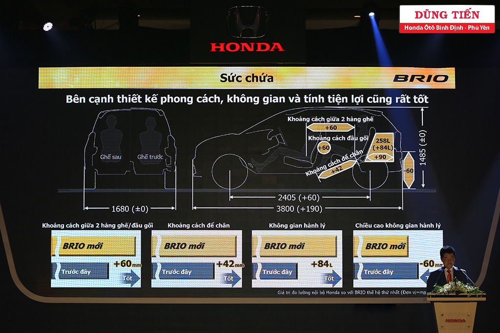 Honda Brio sở hữu chiều dài cơ sở đạt 2405 mm, “nhỉnh” hơn đối thủ Kia Morning 20 mm. So sánh nhỏ này có thể giúp khách hàng yên tâm về độ rộng rãi bên trong của xe.