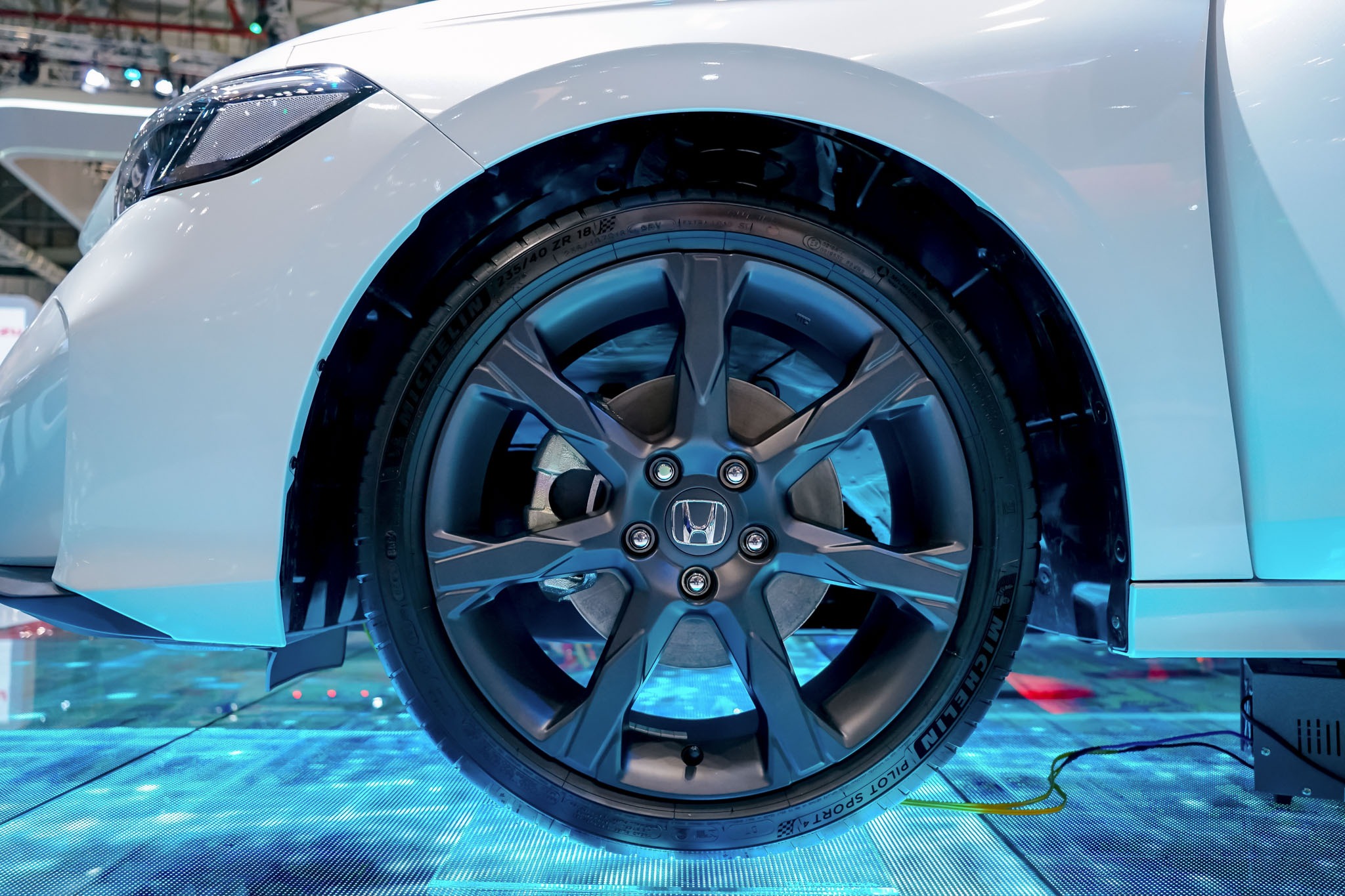 La-zăng 18 inch 7 chấu mới, sơn màu đen thiết kế đa chấu thể thao làm nổi bật vẻ khỏe khoắn (RS, e:HEV RS), lốp loại Michelin Pilot Sport. Riêng bản e:HEV RS cao nhất có thêm tùy chọn màu sơn xanh Canyon River Blue giống CR-V hybrid.