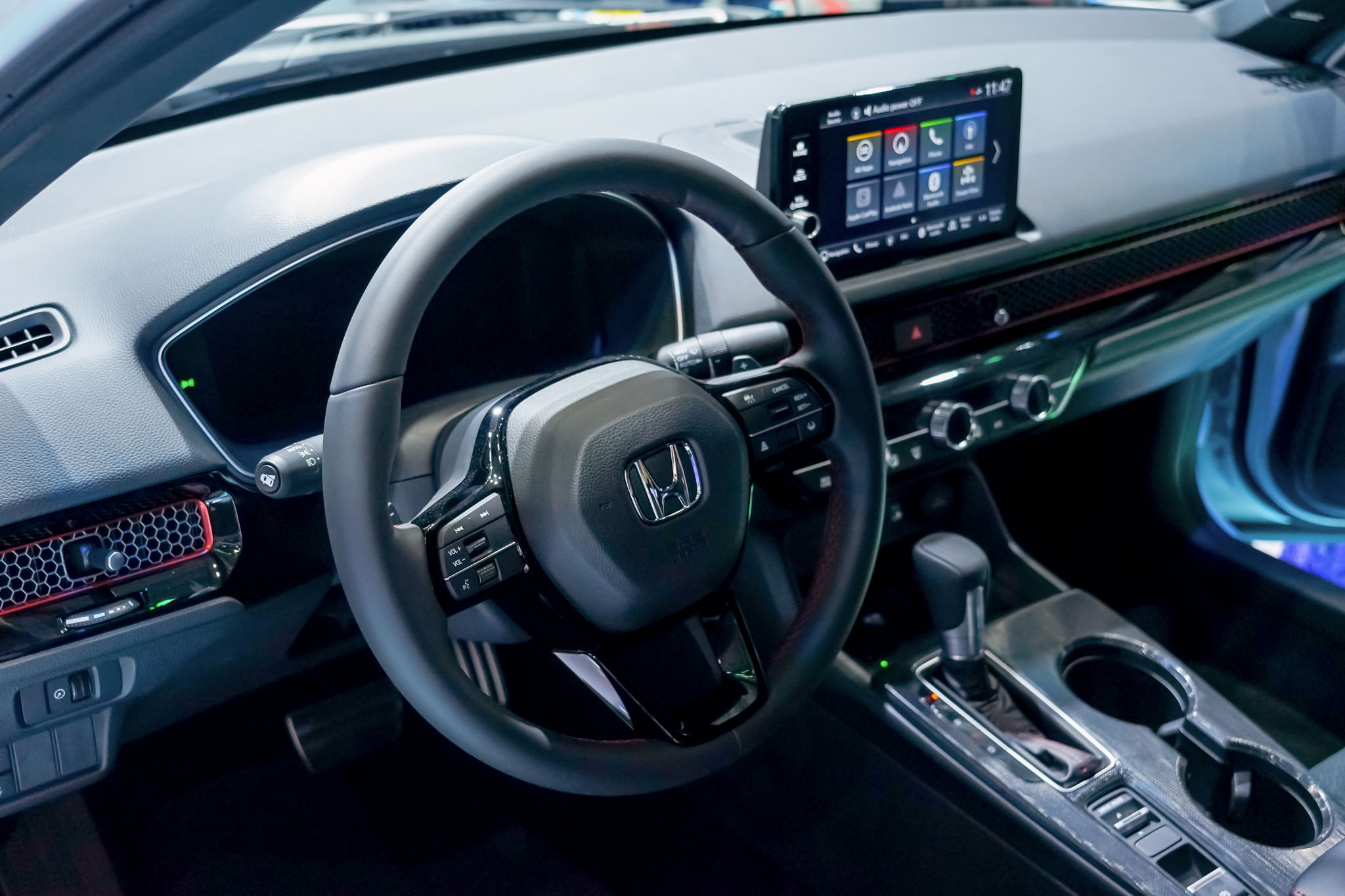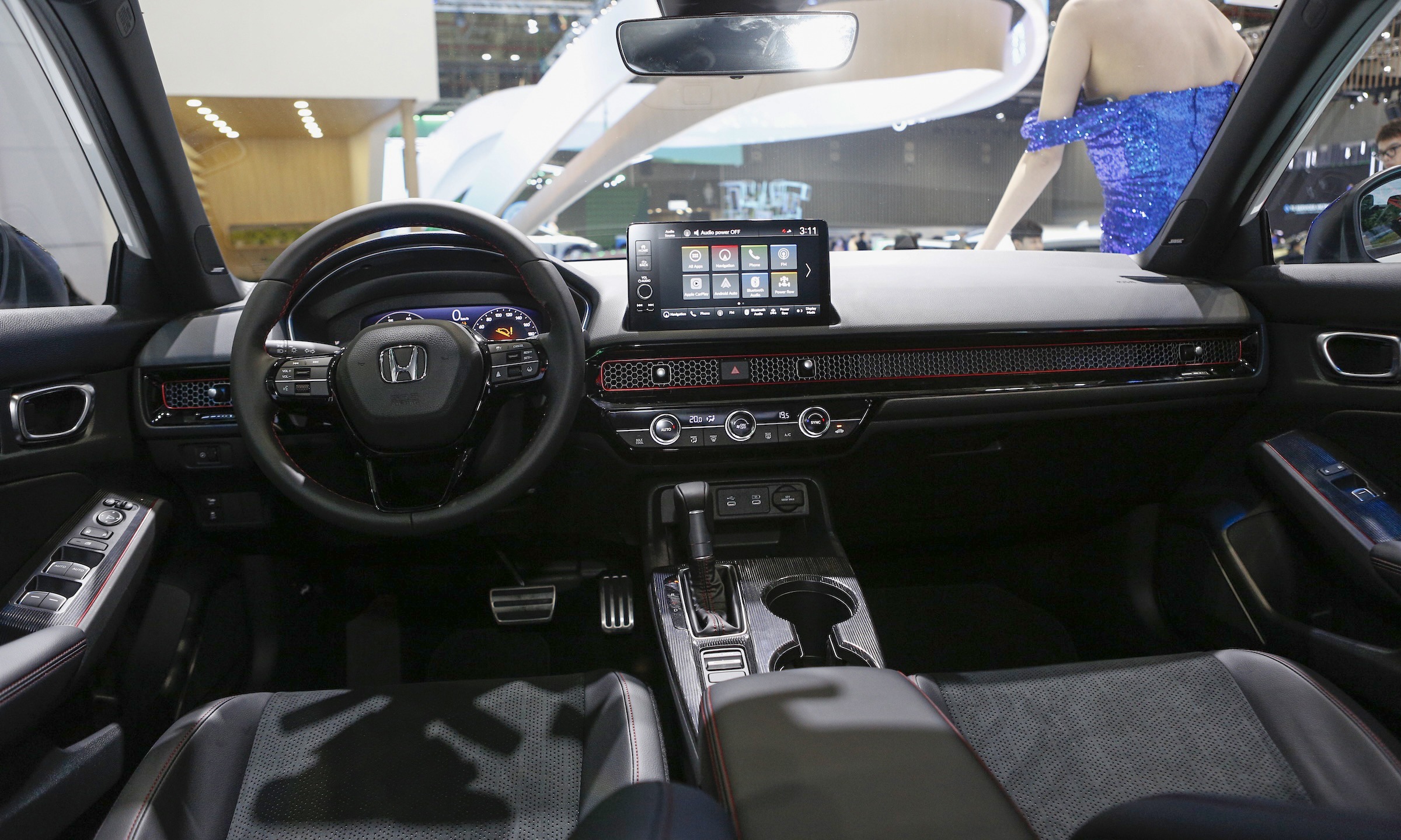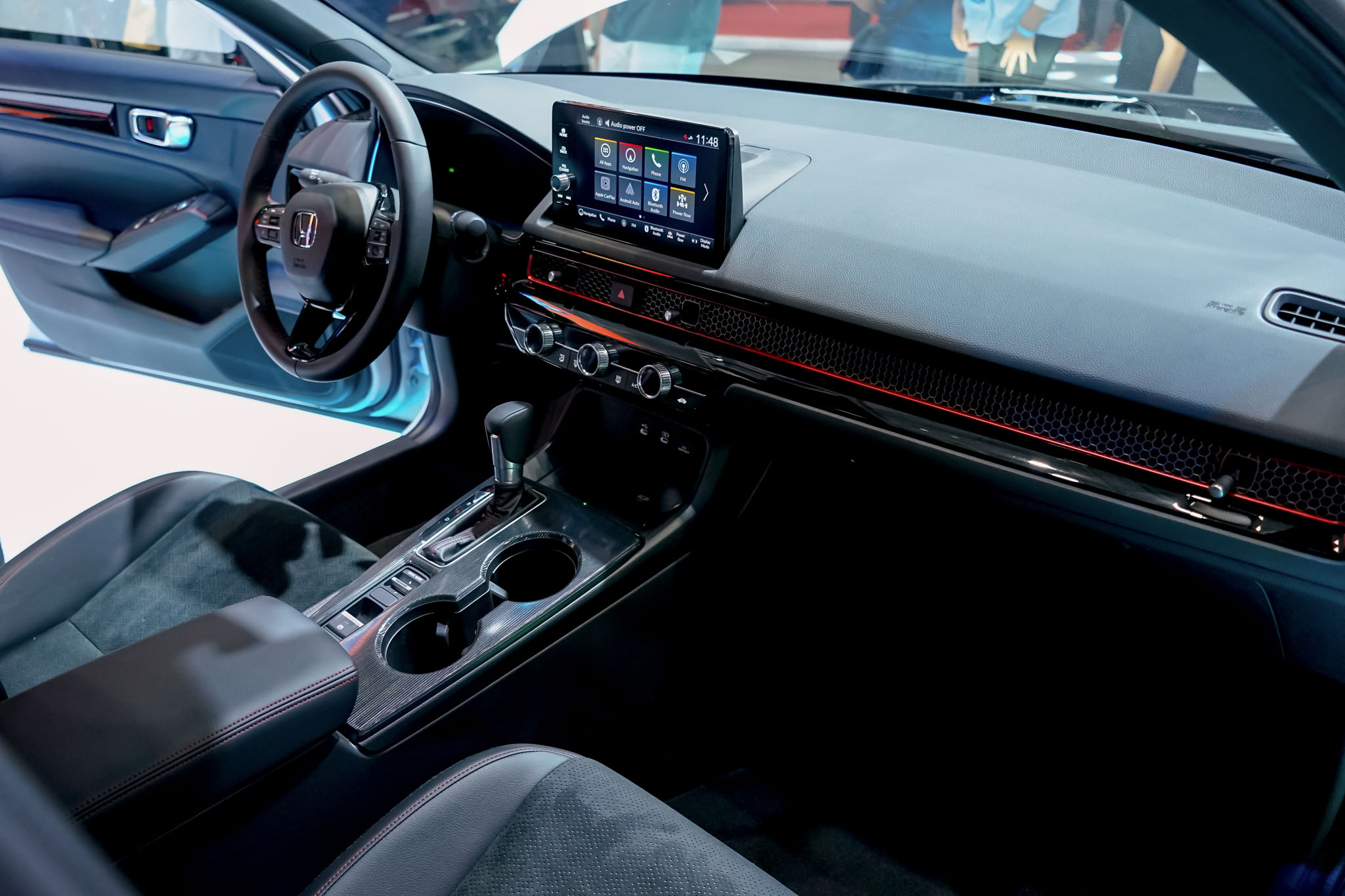 Ở khoang lái, Civic hybrid thừa hưởng trọn thiết kế của mẫu bản RS đã bán trước đó. Riêng ghế bản hybrid bọc da lộn kèm viền chỉ khâu đỏ tương phản, nhấn mạnh đặc tính thể thao mà phiên bản này hướng đến.