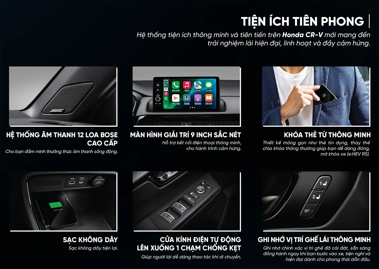 | CR-V e:HEV RS 5 chỗ | Đen, Trắng ngà, Xám, Xanh | 1,250,000,000₫ |