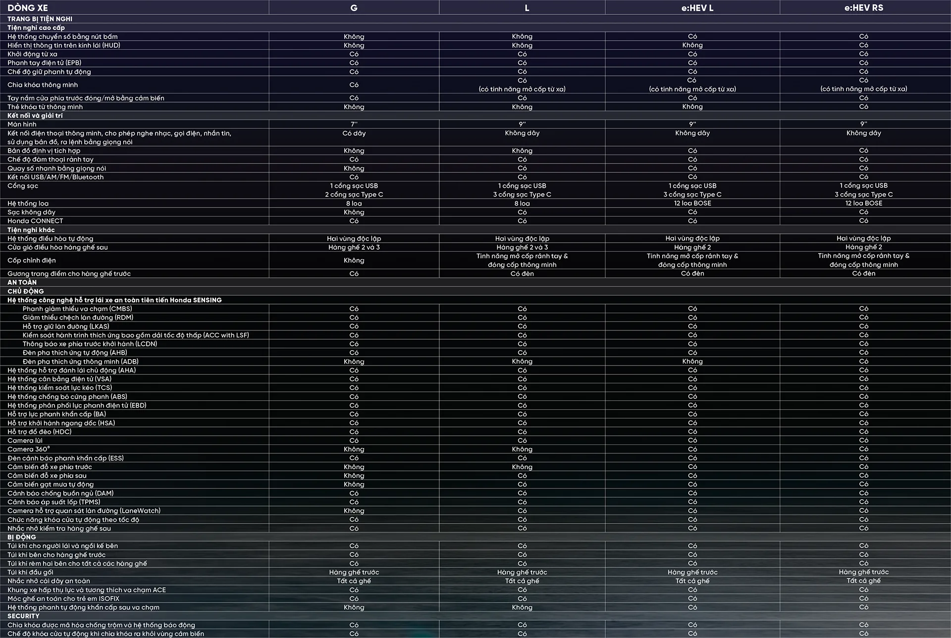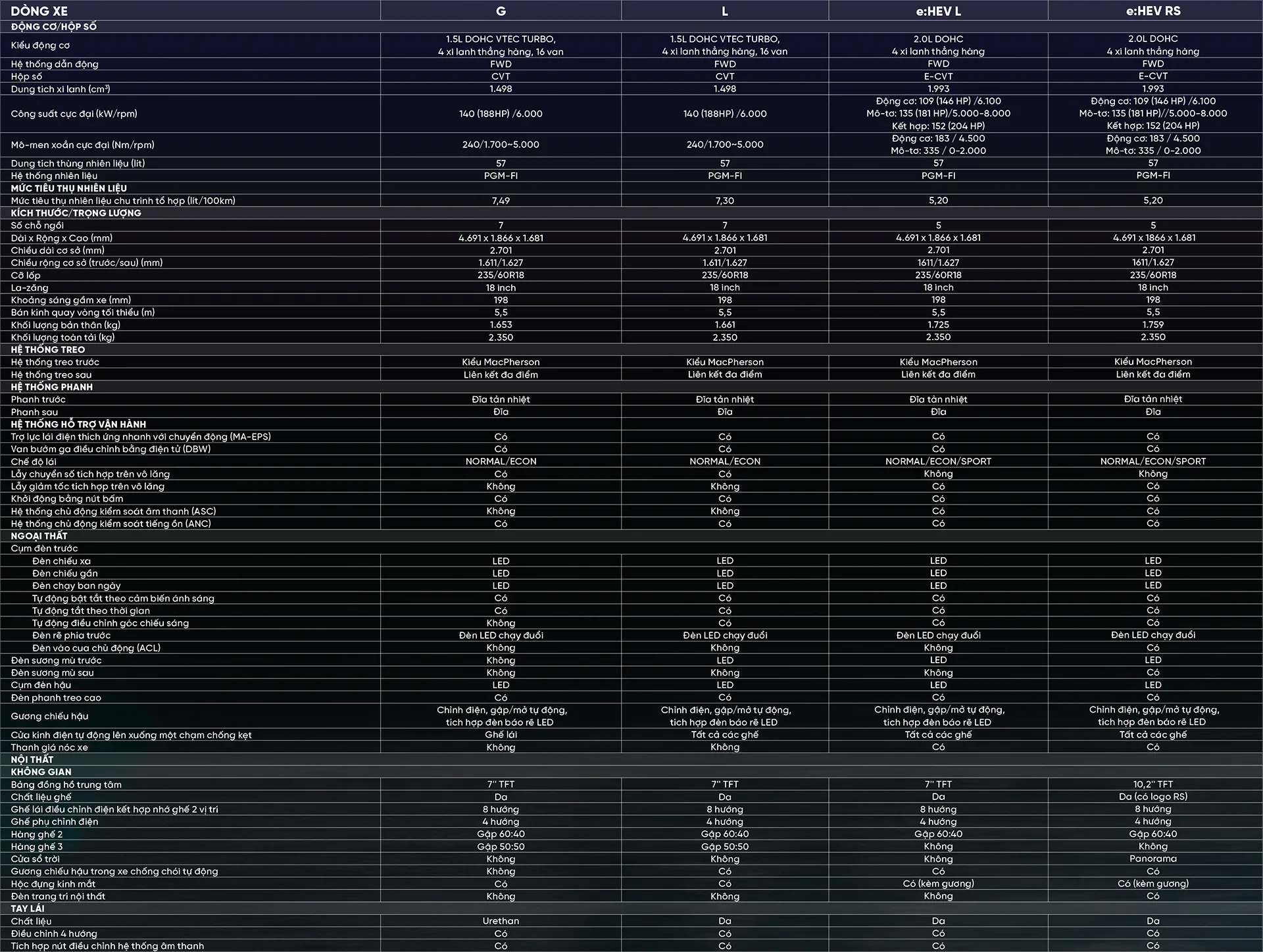 | CR-V e:HEV L 5 chỗ | Đen, Trắng ngà, Xám, Xanh | 1,170,000,000₫ |
