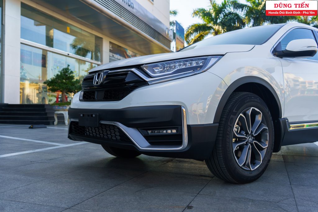 Honda CR-V sở hữu lưới tản nhiệt nay được thiết kế nổi bật một thanh crom sáng bóng nối liền với 2 cụm đèn pha sắc nét, nằm dưới là thanh ngang được sơn màu đen bóng đi cùng biểu tượng Honda. Đèn sương mù dạng LED mang đến thêm phần hiện đại cho xe.