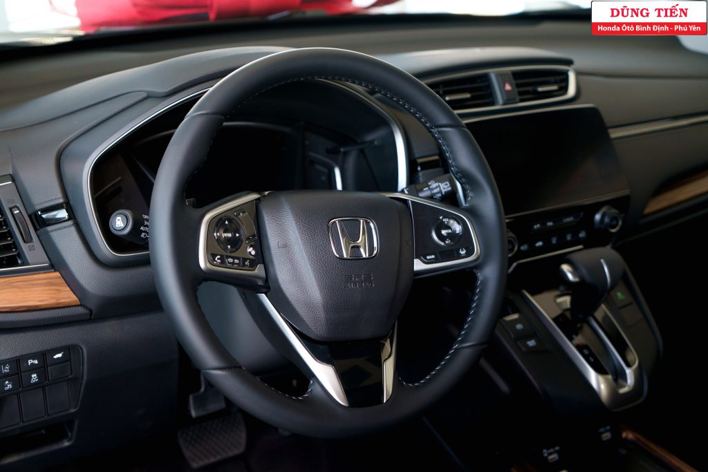 Vô lăng 3 chấu bọc da với thiết kế cứng cáp và sắc sảo quen thuộc nhà Honda vẫn tiếp tục được sử dụng. Tích hợp cùng với đó là hai cụm nút bấm chức năng như đàm thoại rảnh tay, điều chỉnh âm thanh và cài đặt hệ thống ga tự động Cruise Control.