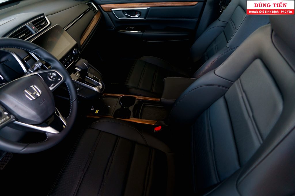 Honda CR-V 2020 vẫn sở hữu khoang nội thất đơn giản và cân đối. Điểm nhấn chính nằm ở kết cấu 7 chỗ theo dạng 5+2 giúp chở thêm được hành khách khi cần thiết. Khu vực táp-lô thiết kế đối xứng, sử dụng ốp nhựa màu kim loại trên bản E và ốp gỗ trên bản L và G.