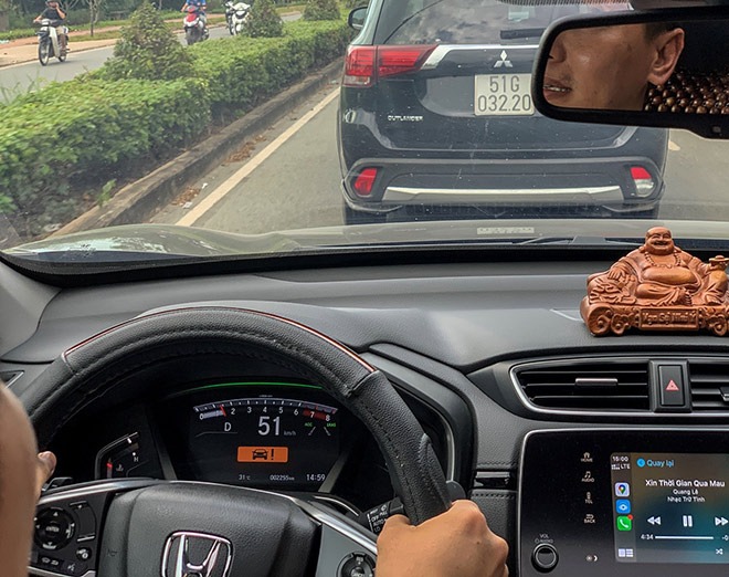 Anh Quốc Việt: Nhà mình cách cơ quan khoảng 20km. Tổng quãng đường một ngày mình di chuyển phải lên đến 50km. Nhiều hôm có công việc cần xử lý thì quãng đường sẽ còn tăng lên nữa. Có khi mình di chuyển cả 100km trên chiếc Honda CR-V.