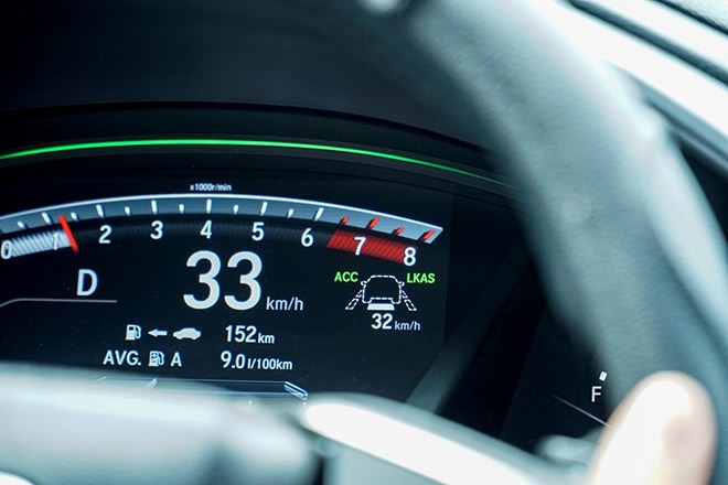Mình chấm điểm cao nhất và thường sử dụng thường xuyên nhất chính là tính năng kiểm soát hành trình thích ứng. Khi bật tính năng này, xe mình sẽ bám theo xe phía trước với khoảng cách theo cài đặt. Tốc độ xe mình sẽ thay đổi theo xe phía trước. Khi xe trước giảm tốc hay thắng gấp thì xe mình cũng giảm tốc và thắng lại theo. Khi chiếc xe phía trước chuyển làn, hệ thống này sẽ tăng tốc đến tốc độ mà người lái cài đặt bởi hệ thống ACC.