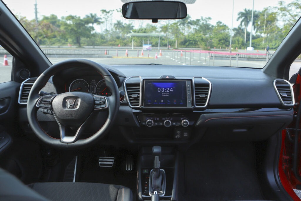 Khoang lái của City 2020 mang diện mạo mới. Màn hình cảm ứng tăng từ 6,8 inch lên 8 inch (bằng Hyundai Accent) trên cả ba phiên bản, tương thích Apple CarPlay và Android Auto. Vô-lăng thiết kế mới kèm lẫy chuyển số sau vô-lăng trên bản RS.