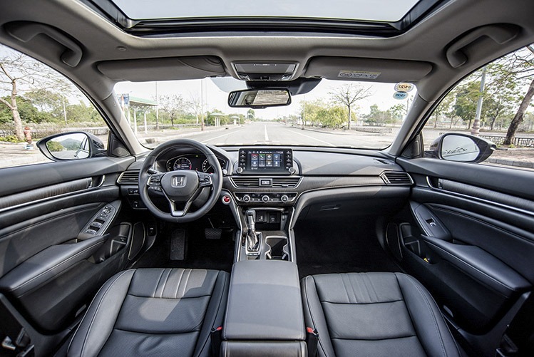 Tiện ích đủ đầy và không thừa thãi, đúng kiểu Honda. Tài xế có ghế chỉnh điện 8 hướng, gương chiếu hậu chống chói, gương gập/chỉnh điện, tự động cụp khi lùi, đèn pha tự động, gạt mưa tự động. Nói chung, tài xế chỉ cần tập trung lái, mọi thứ liên quan đến tầm nhìn đều tự động. Người trên xe có điều hòa tự động hai vùng, cửa sổ trời, màn hình thông tin giải trí 8 inch, kết nối Apple Car Play và Android Auto, hệ thống âm thanh 8 loa. Ghế bọc da ôm lưng, không gian rộng, thoải mái cả khi di chuyển đường dài.