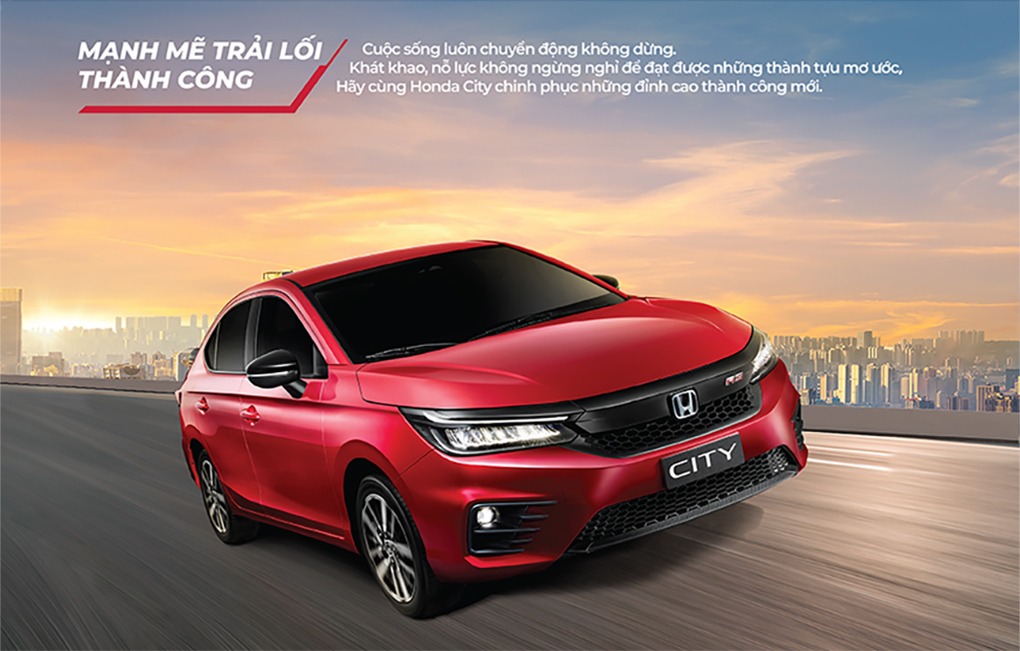 Honda City là mẫu xe thể thao 4 bánh, 5 sao an toàn, 6 túi khí, 7 cấp số ảo, và hệ thống giải trí có tới 8 loa. Cùng với đó là khả năng vận hành mạnh mẽ và tiện nghi hiện đại hàng đầu phân khúc.