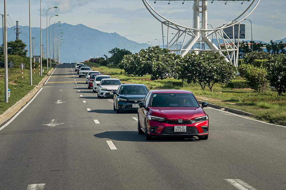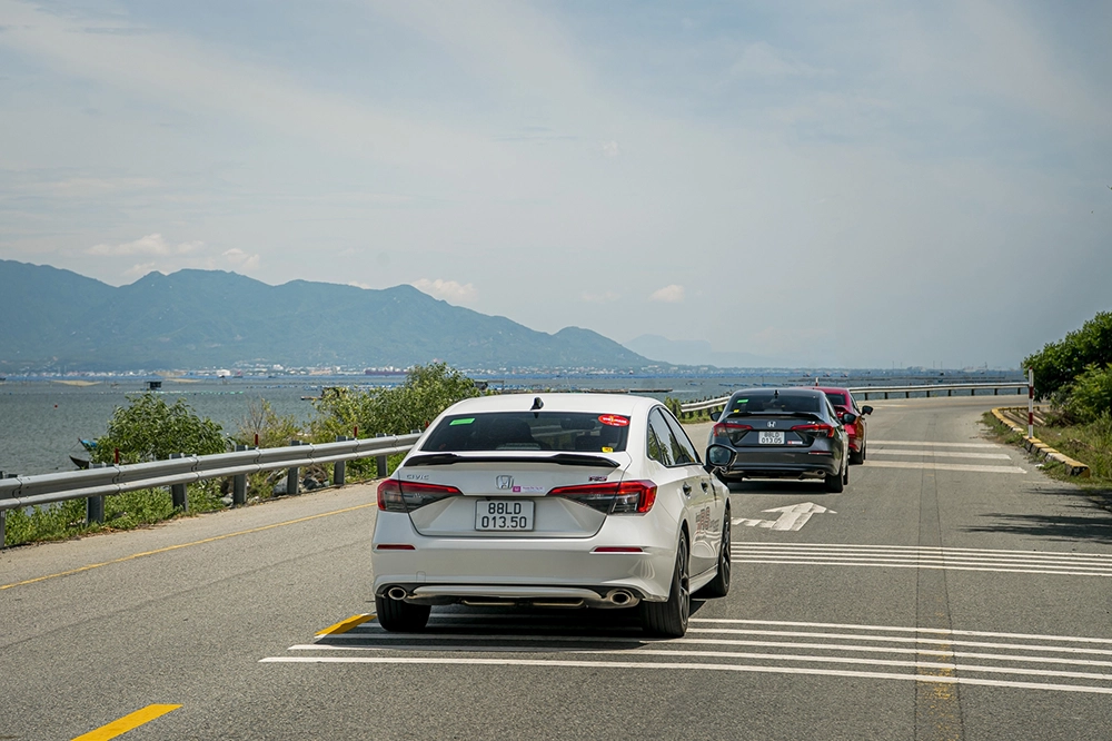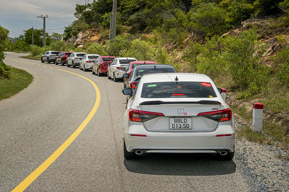 Trong suốt cung đường của hành trình, Honda Civic RS là mẫu xe nhận được nhiều lời khen hơn cả bởi trải nghiệm cầm lái phấn khích. Từng cú nhấp ga, xoay vô lăng cùng khả năng bám đường đều khiến người lái cảm nhận được rõ tinh thần thể thao mà Honda hướng tới